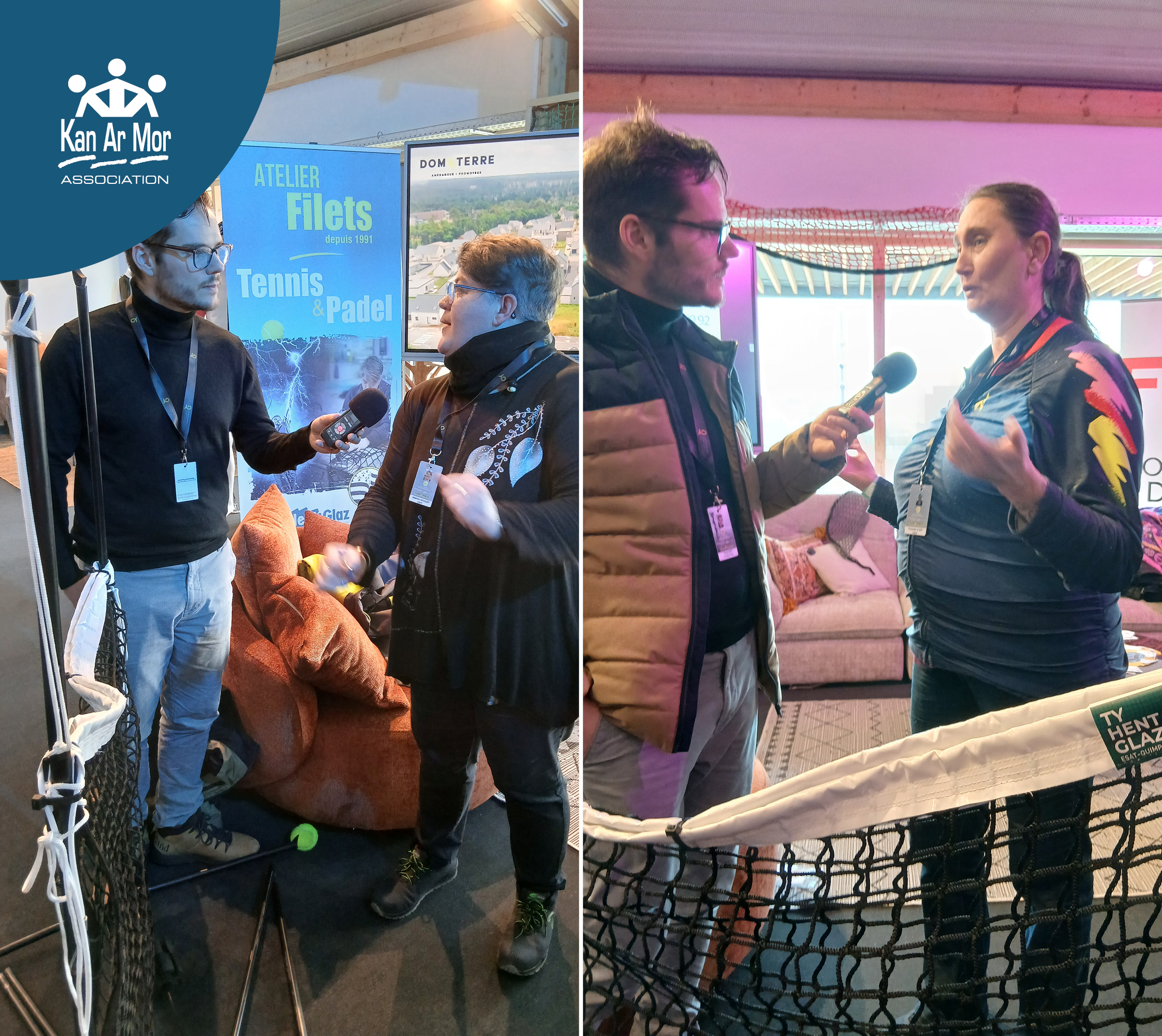 📸 Légende photo : Séverine Gouillot et Christelle Le roy, 2 travailleuses de l’atelier filets, interviewées par la radio Ici Breizh Izel sur le stand open.